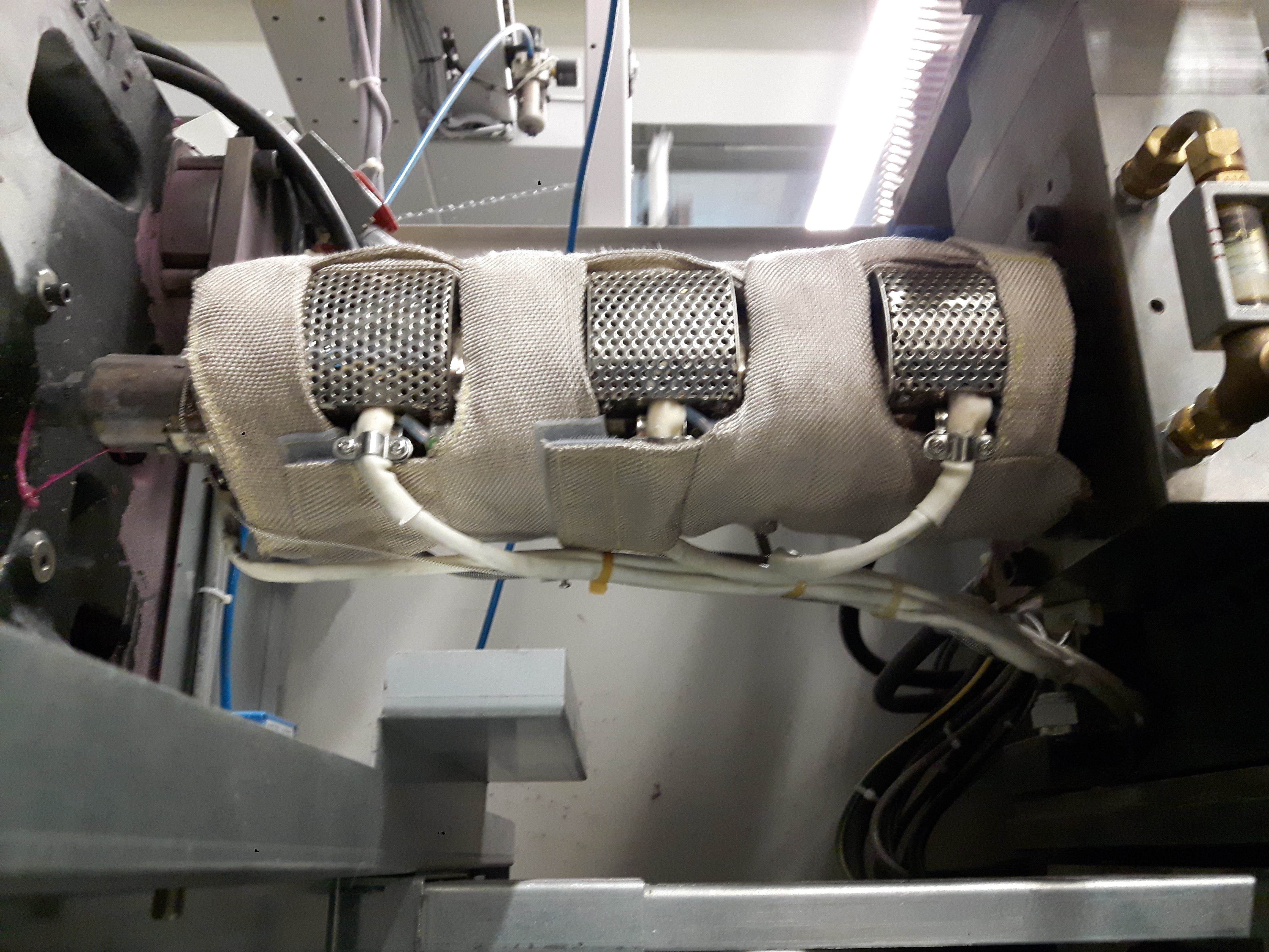In imaginile de mai sus se prezinta o astfel de masina, inainte si dupa izolarea elementelor fierbinti, la o uzina unde s-a urmarit eficientizarea energiei consumate.