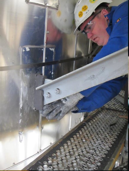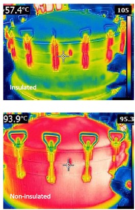 - Materialul izolator a fost aplicat pe un cazan de abur de înaltă presiune a cărui temperatură ajungea la 100°C, astfel încât suprafața să scadă la o temperatură sub 60°C.