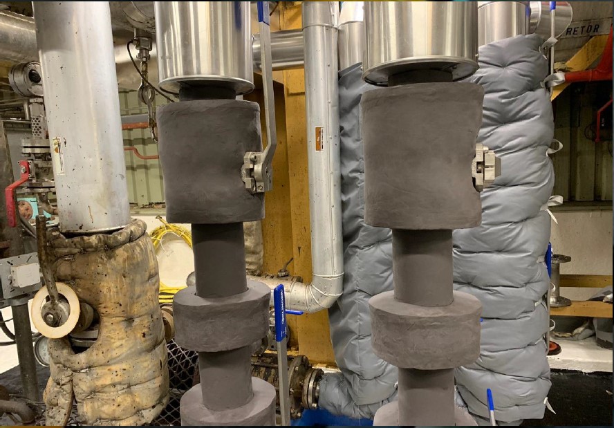 - În imagine este prezentat modul în care materialul izolator, CTP, a fost aplicat pe valvele de ulei încins.