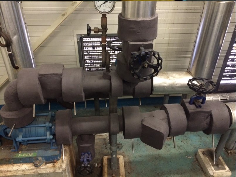 - În imaginea alăturată se exemplifică modul în care a fost aplicată izolația pe conductele prin care circulă uleiul încins.